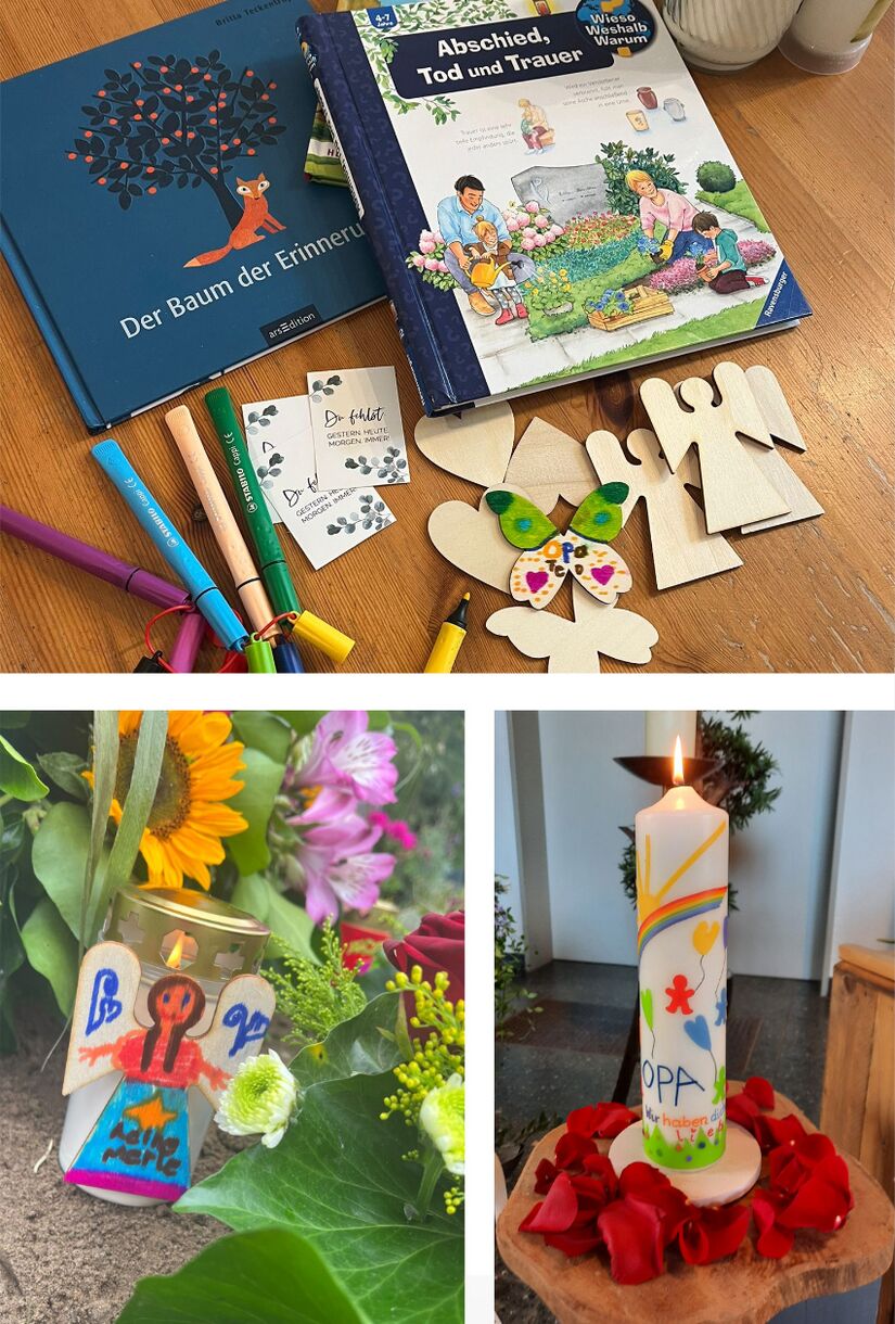 Kinder brauchen in Zeiten der Trauer unsere ganze Aufmerksamkeit – gleichsam haben sie oft einen unbefangeneren Zugang zum Thema Tod als wir Erwachsenen. Deshalb helfen wir ihnen mit besonderen Ritualen dabei, den Verlust zu verarbeiten. Das kann das Bemalen der Urne sein, eine gemeinsame Bastelarbeit, das Gestalten eines Erinnerungsbuchs.
